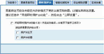 ① 在图2所在的页面顶端,点击“安全防护”->“即时保护IE”,看到如下内容(如图4):