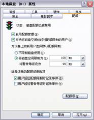 拒绝将磁盘空间给超过配额限制的用户:选择这个复选框,当用户超过了分配的磁盘空间时,他们就会收到一个空间已用完的消息,而且不能在往空间里面写任何东西
