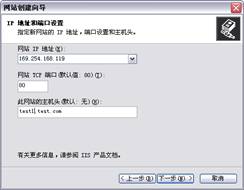 所有的主机都创建好了后,就打开Internet信息服务(IIS)管理器,在WEB站点下创建新的WEB站点。在站点创建向导的IP地址和端口设置对话框中输入需要绑定的完整域名,如www.test.com、test1.test.com、test12.test.com,创建完成后,域名就和空间绑定了。如图7: