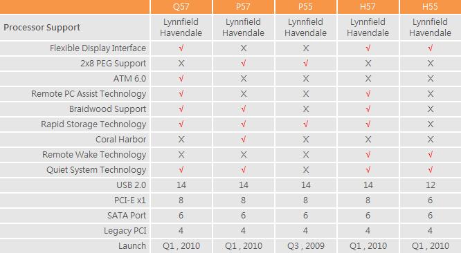 根据规划,P55芯片组将在今年第三季度配合Lynnfield处理器发布上市,而其他四款P57、H57、H55、Q57都要等到2010年第一季度Havendale推出的时候。