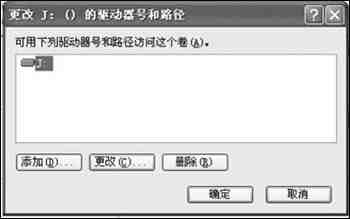 在窗口右侧用鼠标右击“J”盘符,在快捷菜单上选择“更改驱动器名和路径”,出现如图3所示对话框。