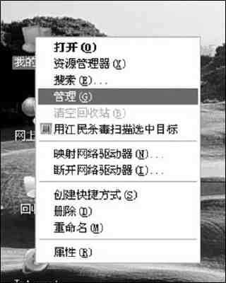 首先,在“我的电脑”上单击右键,选择“管理”(图1)。出现管理的窗口。