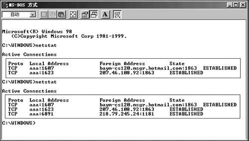 提示:当在进行以上操作时,建议用户除了登录MSN以外,不要打开任何其它网络软件或进行浏览网页等的操作,以免因为出现那些无关IP地址而干扰了你的判断。