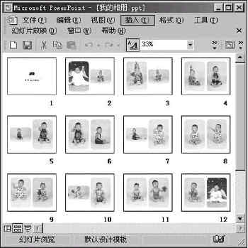 以上操作完成之后,单击对话框中的[创建]按钮,PowerPoint就自动生成了一个电子相册,如图2所示。