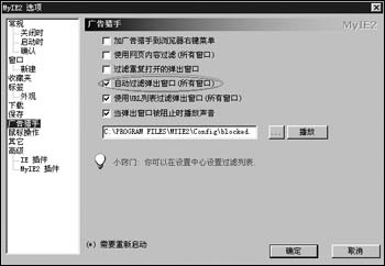 为了对付弹出式窗口广告,MyIE2提供了两种解决方案——自动过滤与自定义过滤。