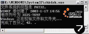 它是创建并显示磁盘的状态报告。Chkdsk命令还可列出并纠正磁盘上的错误。(见下图)