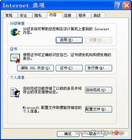 如果以后又不小心进入该站就又得麻烦一次。其实,你可以在IE中做一些设置以便永远不进该站点。打开IE,点击“工具”→“Internet选项”→“内容”→“分级审查”,点“启用”按钮(图5),会调出“分级审查”对话框,然后点击“许可站点”标签(图6),输入不想去的网站网址,按“从不”按钮,再点击“确定”即大功告成!