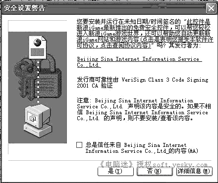 由于Active插件可以强行植入浏览器,浏览一些网站时会检测是否安装了此类插件,如没有安装则会弹出一个对话框,询问是否安装(如图1),如果不想安装点击否,但以后再次浏览还会出现此类提示,十分麻烦。