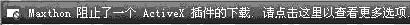 虽然Windows XP SP2补丁可以管理Active插件,但我们用的系统不是Windows XP怎么办呢?不用着急,最新版的Maxthon也可以轻松的拦截Active插件。