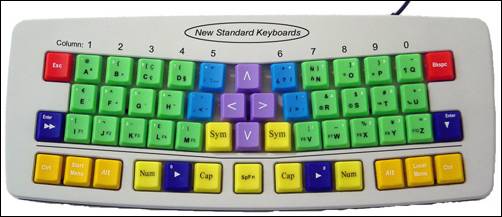 这款键盘是由著名工业心理学和人体工程学工程师John Parkinson设计的,并且已经在美国和英国申请了专利。键位是按字母顺序安排的,这样就不需要去专门练习键位,而且这种设计可以大大提高打字速度。这款键盘在人体工程学上相对于传统标准键盘还有较大优势,键位的编排更有益于手指的自然运动,而且键位按字母顺序排列更容易让人找到各字母的位置,整个键盘按不同颜色分布,各种键很容易被找到位置。编辑键被整合了,这样整个键盘非常小巧。